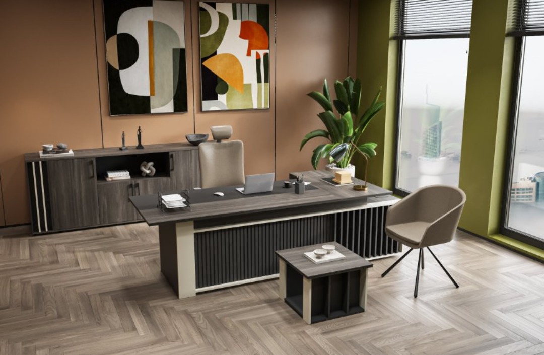 Tabla,perde,etajer melamindir. Ön perdede bulunan fugalı panel mdf üzeri folyo kaplamadır. Masalar etajerli üretilmektedir.